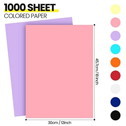 Assorted Colors Paper: you will receive 1000 sheets of construction paper in assorted colors, respectively are light yellow, light pink, light purple, lake blue, dark green, orange, dark red, black, white, dark blue, 100 sheets of each color. The construction paper in bulk has multiple colors and quantity enough for your daily use