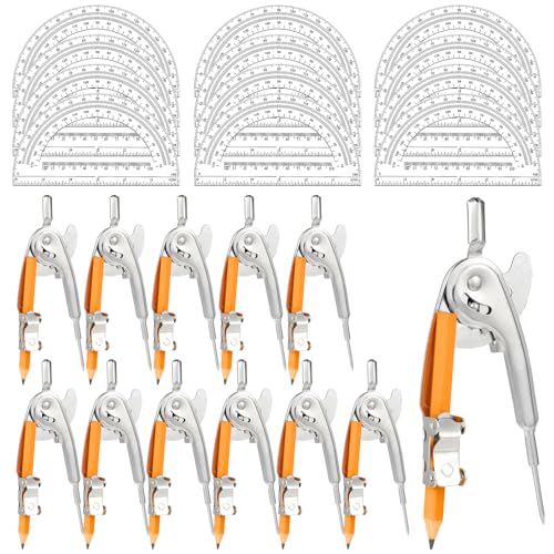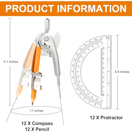 Value Compass Geometry Tool Set: you will receive 24 Pieces geometry compass set, including 12 pieces of math compass with pencils and 12 pieces of geometric protractors, enough to meet your different work or study needs, and share with family or friends