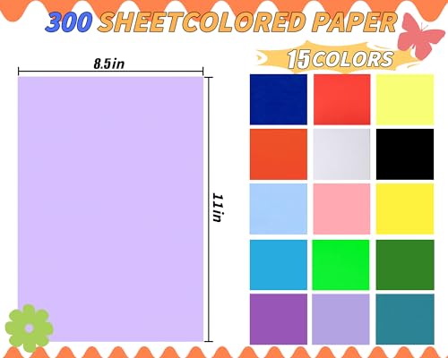Colored Construction Paper Bulk: you will get 300 sheets color paper for crafts, 15 assorted colors 20 sheets of each color. mixture for different color shades. Greens, blues, Reds, blues, pinks, yellows…Multi colored paper meet Your different demand for paper craft projects and for Easter, valentine, Halloween,Christmas Decor. Smart paper for cricut maker etc.