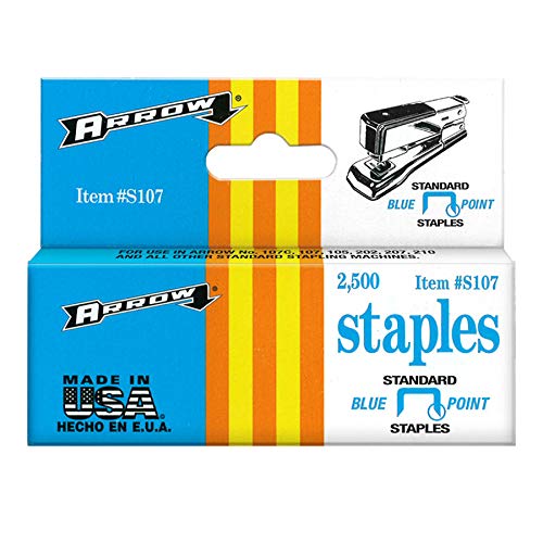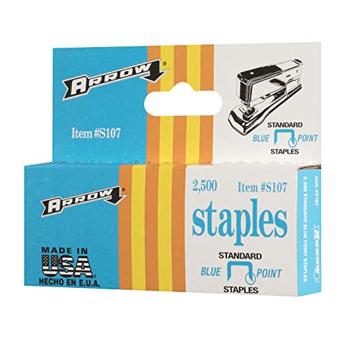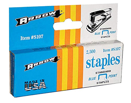 The Arrow Fastener S107 staples are standard-size, blue painted staples intended for use with Arrow Fastener’s 107 standard stapler and 105 four way standard stapler. Measures 1/4-inch leg length.