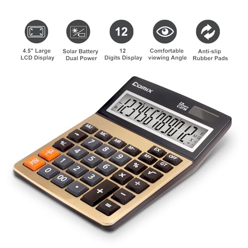 【Large LCD Display】4.5″ LCD display with 12 digits, easy readability and convenience for larger calculations.