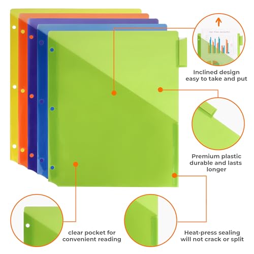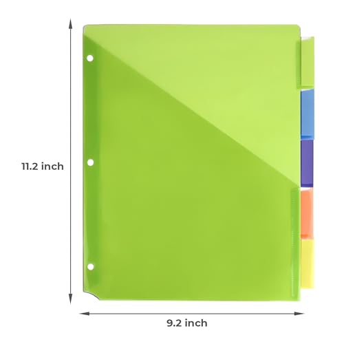 Color-Coded 5-Tab Pocket Dividers: The binder folders with pockets and holes feature a 5-tab design in different colors, perfect for organizing your files and documents on categories, attributing each a different color.