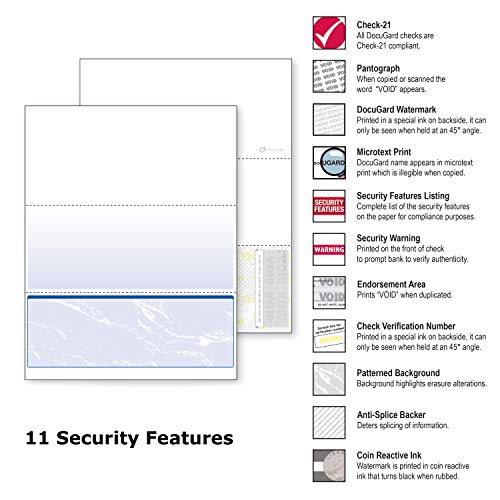 DocuGard blue marble bottom business checks utilize 11 comprehensive security features recommended by the National Check Fraud Center and are ANSI compliant