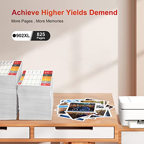 High Yield 902xl black for hp 902xl ink cartridges combo pack: As much as 825 pages per 902xl black ink cartridge (base on 5% coverage)