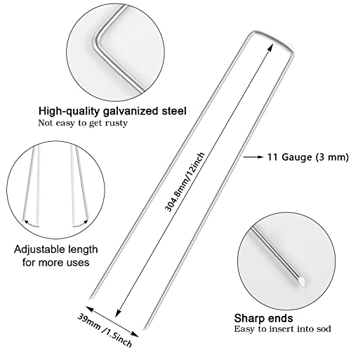 【SIZE】The landscape fabric staples are 12 inches long, 2 inches wide and 11 gauge. This heavy duty garden stakes can hold a variety of garden and landscape objects.