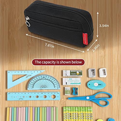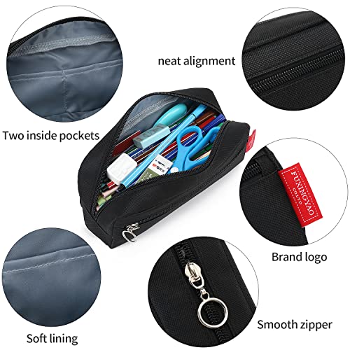 【2 Compartments】: Unzip the top zipper to open up the main compartment,it is a great place for stashing larger items,like pen sets or calculators. The 2 small inside pocket is handy for erasers and small items that tend to get lost. The outer zipper pocket is perfect for rules or other items.