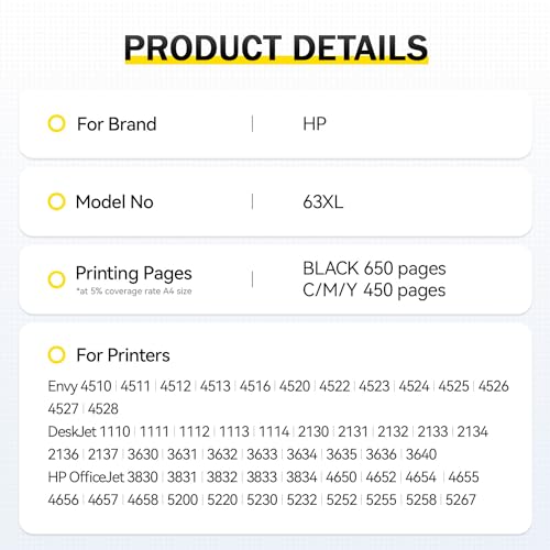 Prime Web page Yield: 650 pages per 63xl black and 450 papers per 63xl colour.(in keeping with five% protection)