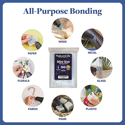 MINI SIZE: 8” long x 0.27” diameter (200mm x 7mm). Our mini size hot glue gun sticks are compatible with most glue guns! And the unique 8“ length means you do not have to keep refilling glue sticks.