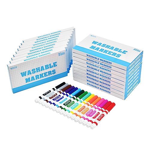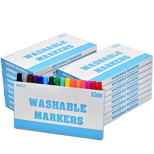 288 count washable markers in 16 assorted colors, come in 18 individual boxes, classroom bulk pack.
