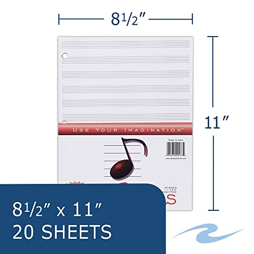 Founded in 1887 by D.M. Bare, Roaring Spring Paper Products has been an integral part of the Roaring Spring community for more that 130 years. Employing over 200 people, the company prides itself on remaining a family-owned, American small business. Loose-leaf paper specifically designed for music compositions. The smooth, white paper is heavy 80# offset, designed to hold-up on music stands. The paper is printed with 12 staves of music lines. There are 20 sheets per pack, 11″ x 8.5″. Sheets are polywrapped with a topsheet, and are 3-hole punched. Made in India.