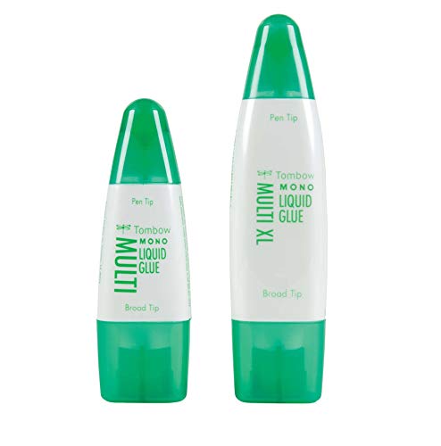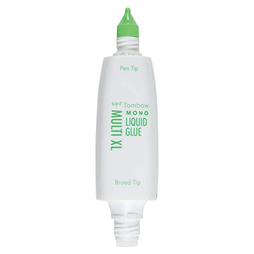 Now available in a larger size, Tombow MONO Multi XL Liquid Glue is the same great glue crafters know and love, but with twice as much glue per bottle. Multi-purpose glue creates repositionable bond or ultra strong permanent bond. Adhesive bonds two ways: permanent by applying while glue is still wet or removable by letting glue dry before positioning. Dual applicators in one ergonomic dispenser that is easy to hold. Use the pen tip for small areas or a fine line of glue and use the broad tip for large areas. Glue dries fast with strong bond that ensures projects will hold up over time. Acid-free and photo-safe. 1.76 oz (50g).